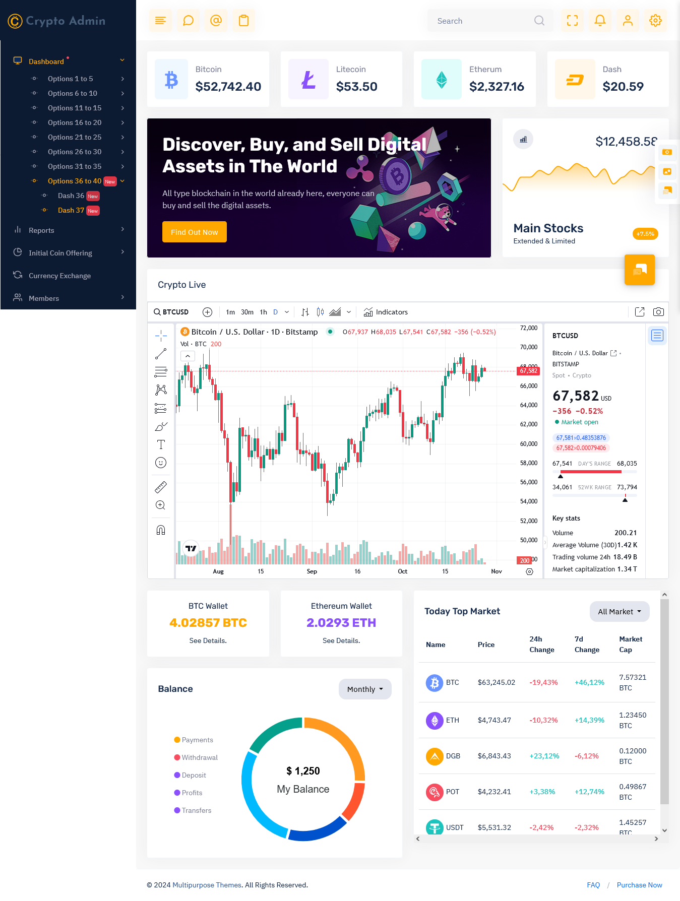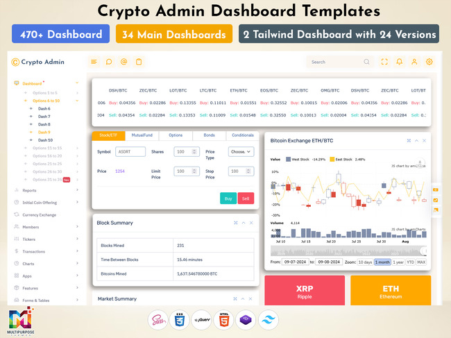 Welcome to Multipurpose Themes. Our Crypto Admin Template stands out as an exceptional solution, designed to cater to the diverse needs of cryptocurrency enthusiasts and professionals alike. This template boasts an impressive collection of 34 unique dashboard designs, along with advanced features that simplify the complexities of crypto management.