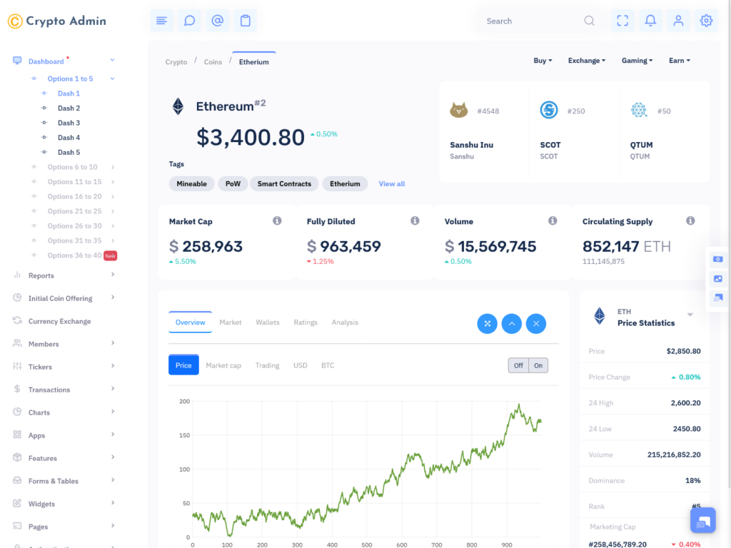 Crypto Dashboard Template: An Overview of Features and Design Options