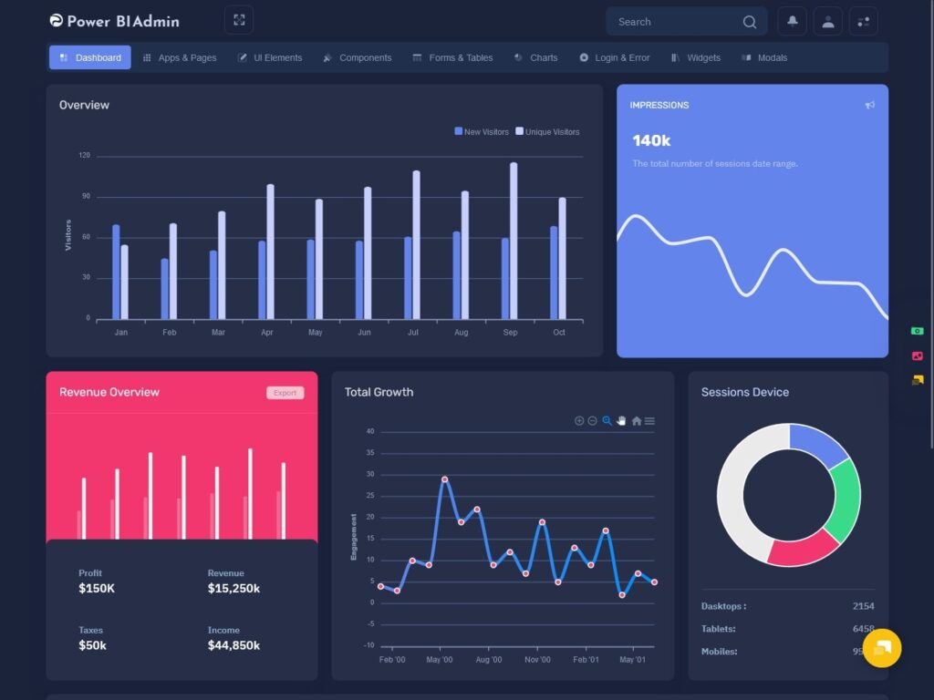 Dashboard Design and components of Power BI Admin Template