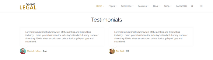 Divine Pro Legal Responsive HTML Templates provides Custom Plugin. This will help you to display easily attractive and eye-catching Unlimited testimonials, client reviews or codes in multiple ways anywhere.