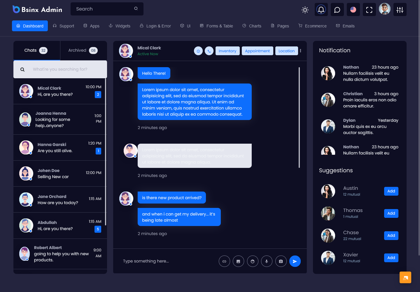 For businesses that rely on live chat or customer support, a Chat Dashboard is essential. It helps you manage customer queries, live chats, and support tickets in one place. You can track response times, manage conversations, and provide faster support. The Bootstrap Admin Template ensures that this section is organized and easy to use, offering a smooth experience for both customers and support agents.