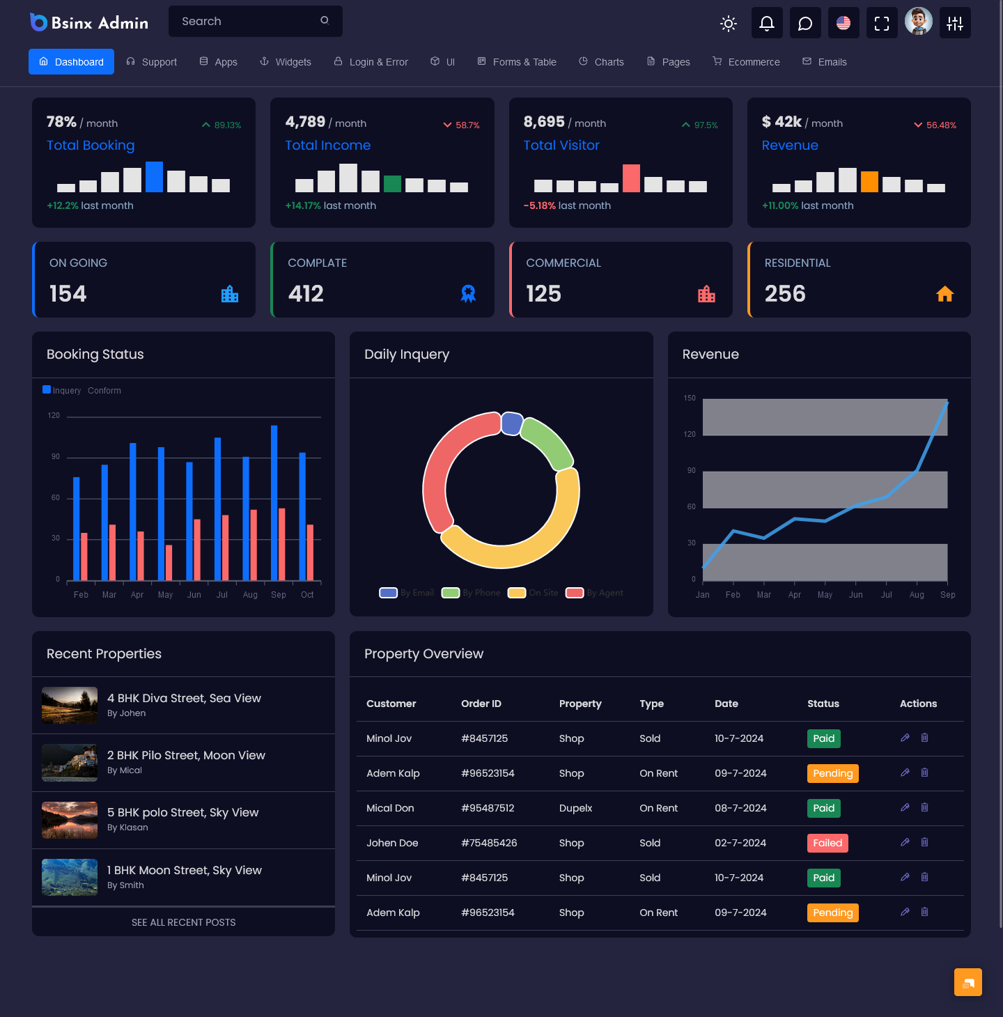 For real estate agents, managing property listings and client interactions is key. The Real Estate Dashboard provides a comprehensive platform to track listings, sales, and client communications. You can manage multiple properties and monitor transactions with ease. The Admin Template ensures that this section is easy to navigate and keeps you organized.