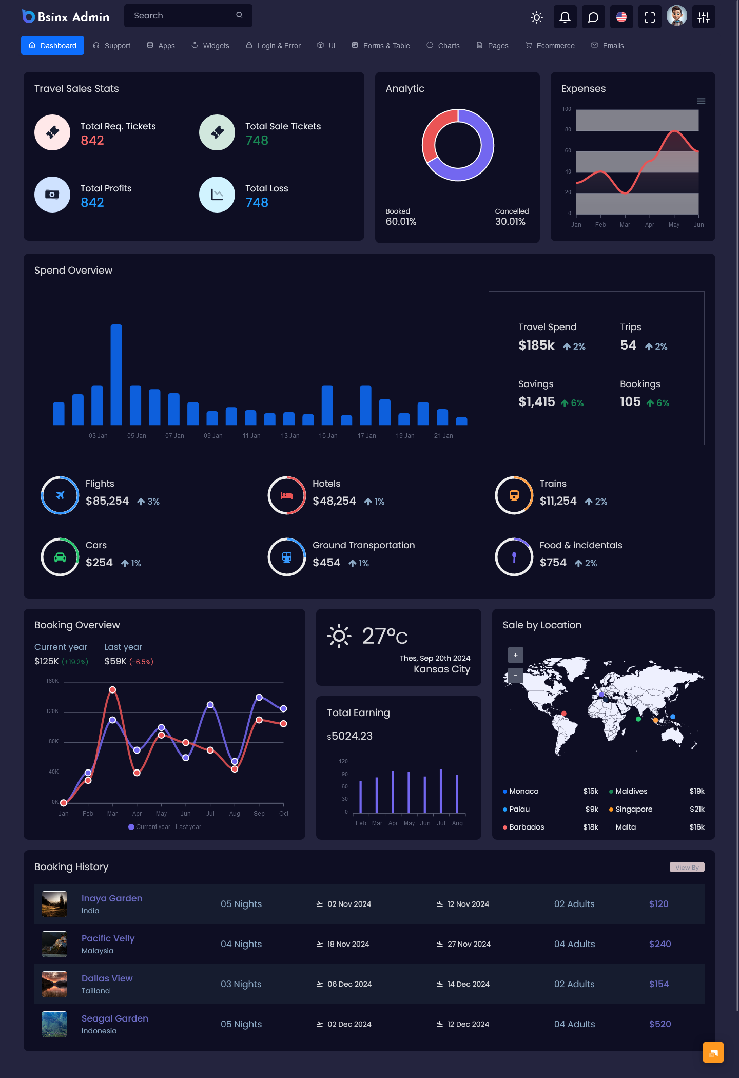 If you run a travel agency, the Travel Dashboard is perfect for managing bookings, itineraries, and travel packages. This dashboard helps you stay on top of reservations, payments, and customer requests. It also provides real-time travel information to enhance customer service. The UI Dashboard ensures that everything is easy to track and manage.