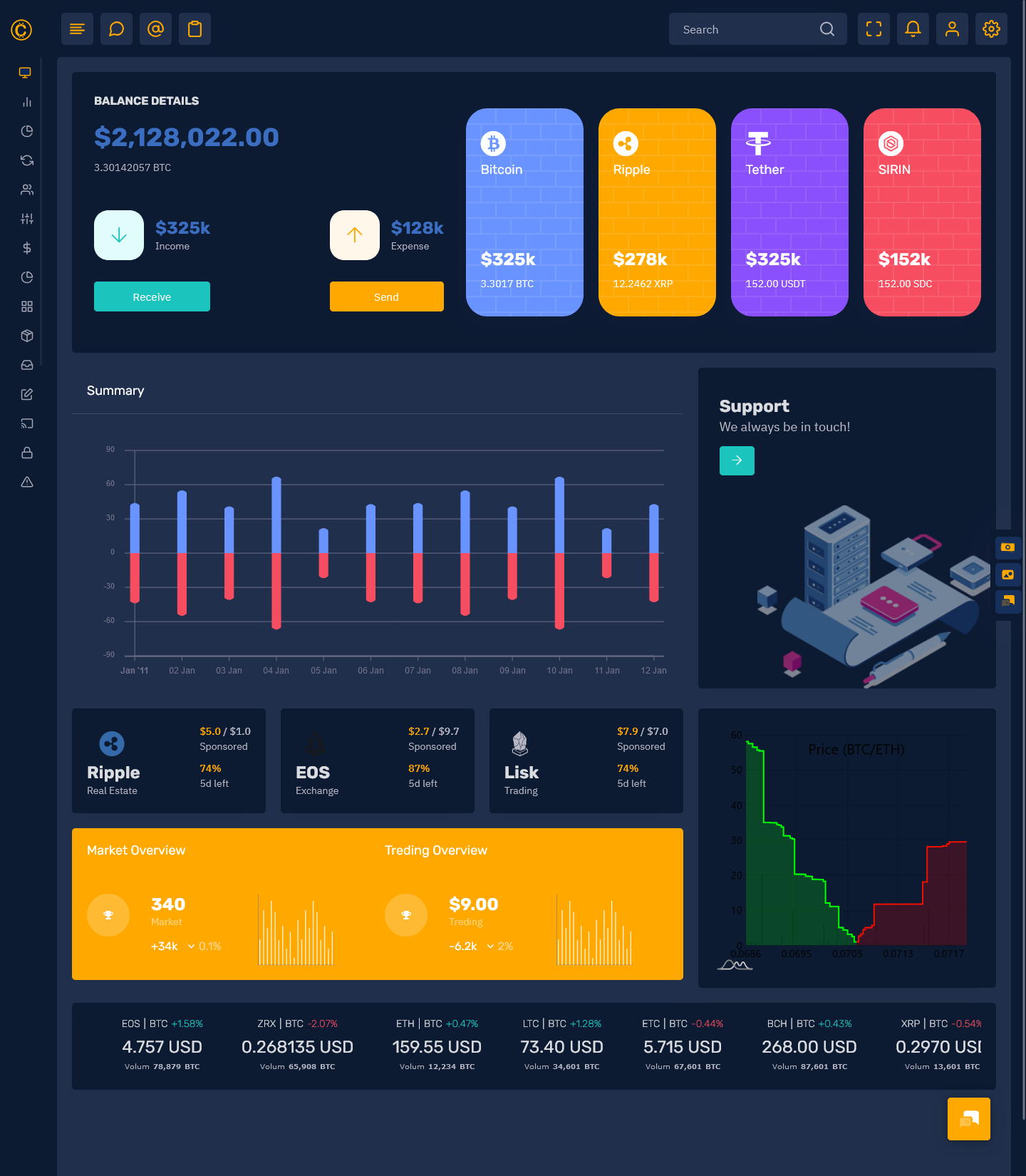 In summary, the Crypto Wallet Dashboard and crypto admin template are indispensable tools in the world of cryptocurrency. The wallet dashboard provides users with an easy way to manage their digital assets, while the admin template serves as a powerful backend tool for developers and businesses. Together, they enhance the overall experience in the cryptocurrency ecosystem, making it more accessible and efficient for everyone involved. Whether you’re a casual investor or a developer building a crypto platform, these tools are designed to simplify your journey in the dynamic world of digital currencies.