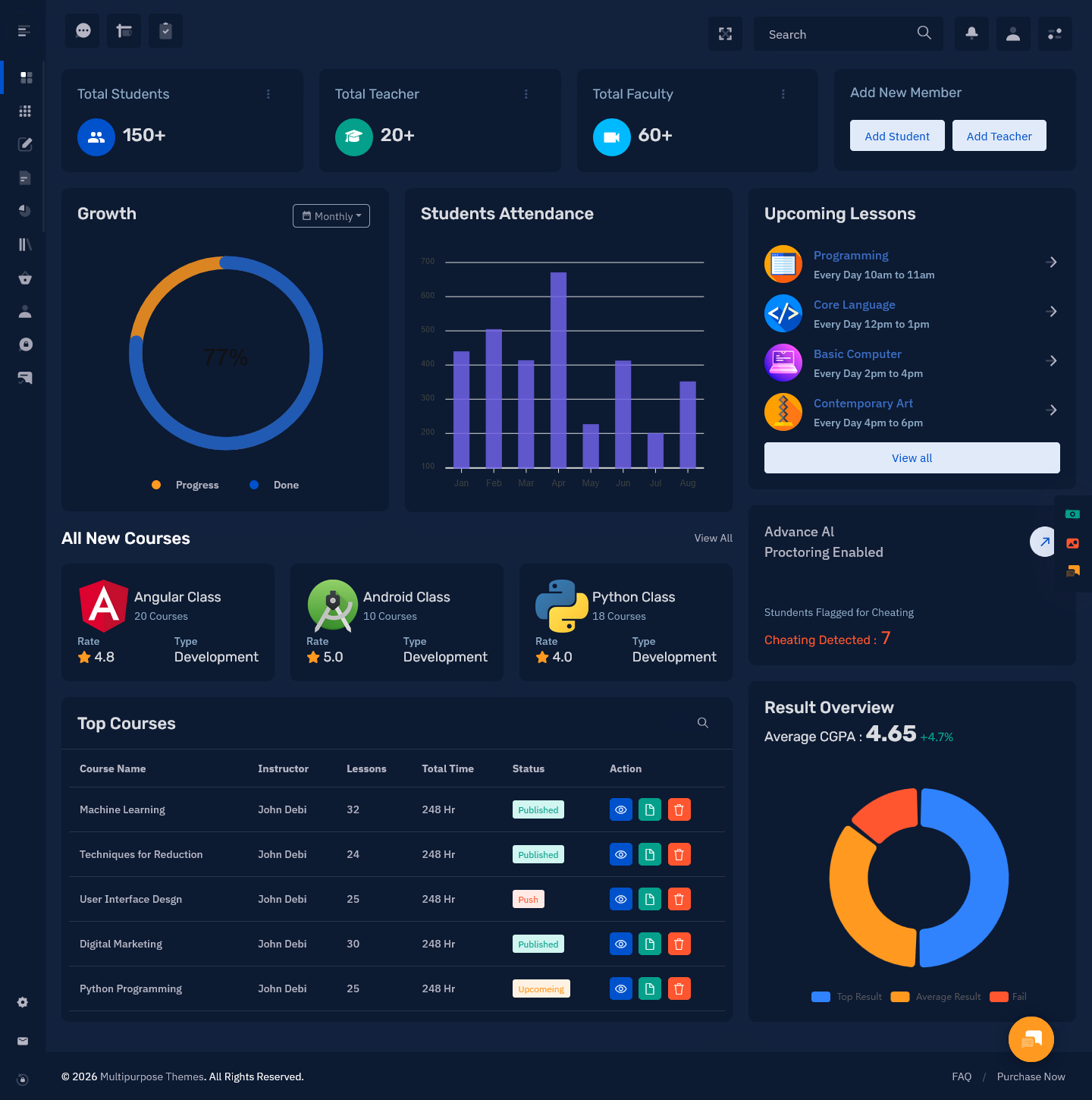 Speed and performance. A slow Admin dashboard frustrates users. Make sure the template is built for fast load times, even with lots of enrolled users.